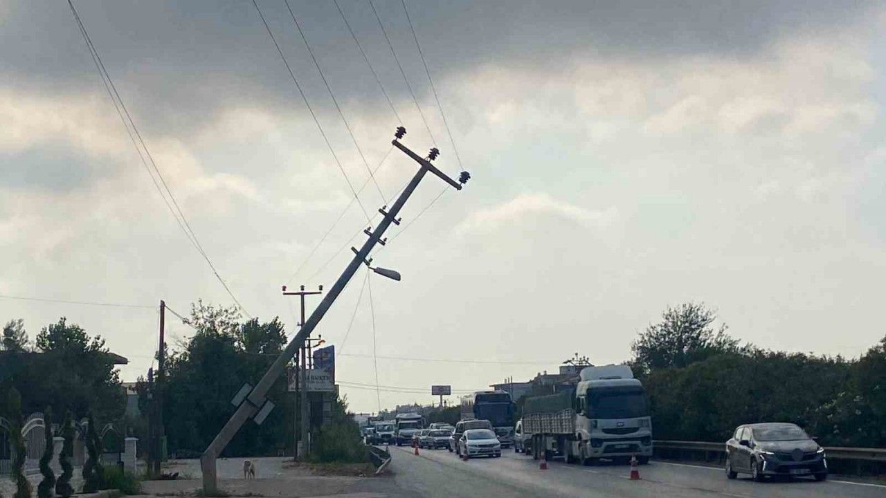 Antalya’nın Serik ilçesinde tırın çarptığı elektrik direğinde devrilme riski oluşunca trafik ekipleri yolda güvenlik önlemi aldı. Ekipler yaptığı araştırmada ise tırın sürücüsünü olaydan farklı yerde araç içinde uyurken buldu.