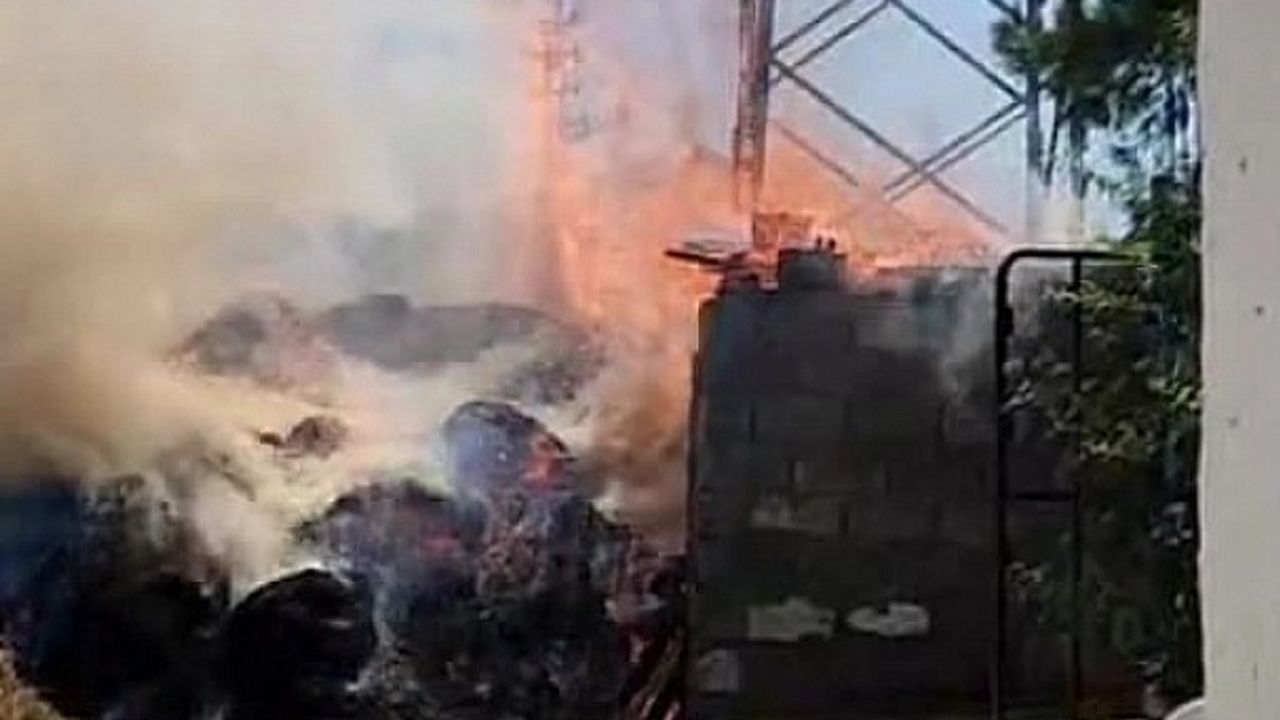 Malatya’nın Battalgazi ilçesinde elektrik direğinden kopan kablo, bir odunluğun üzerine düşerek yangına neden oldu.