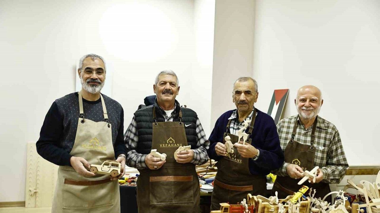 Bağcılar Belediyesi Vefahane Yaşam Merkezi’nde bir araya gelen emekli emniyet amiri Niyazi Ertürk, emekli PTT müdürü İlhan Yılmaz ve ilaç fabrikasından emekli şef Fethi Şengör, hem çocukluklarını yaşıyor hem de torunları için organik oyuncaklar üretiyorlar.