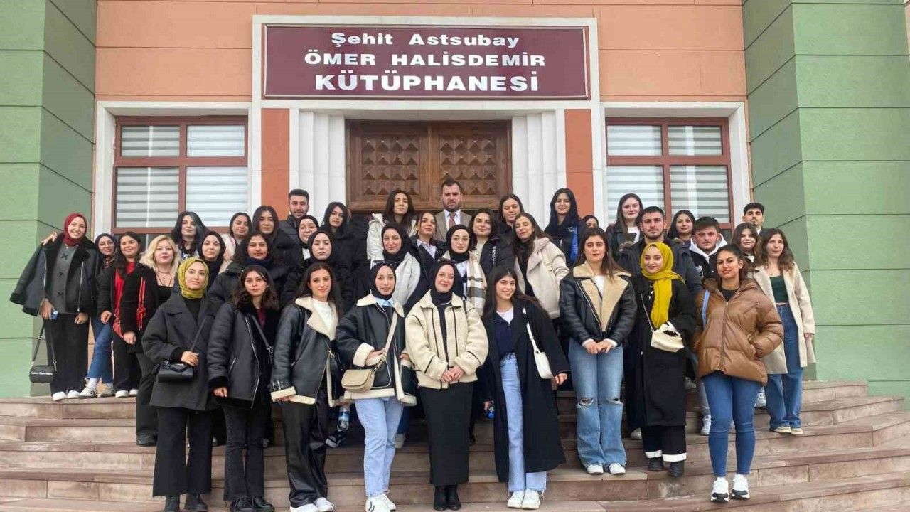 Emet Meslek Yüksekokulu Müdürü Öğr. Gör. Dr. Vedat Bakır ve idari personelin eşlik ettiği gezide, öğrenciler öncelikle Kütahya Dumlupınar Üniversitesi Kütüphanesi’ni ziyaret etti. Burada kütüphane görevlileri tarafından bilgilendirme sunumu yapıldı ve kütüphanenin fiziki ve dijital kaynaklarından nasıl yararlanabilecekleri anlatıldı.