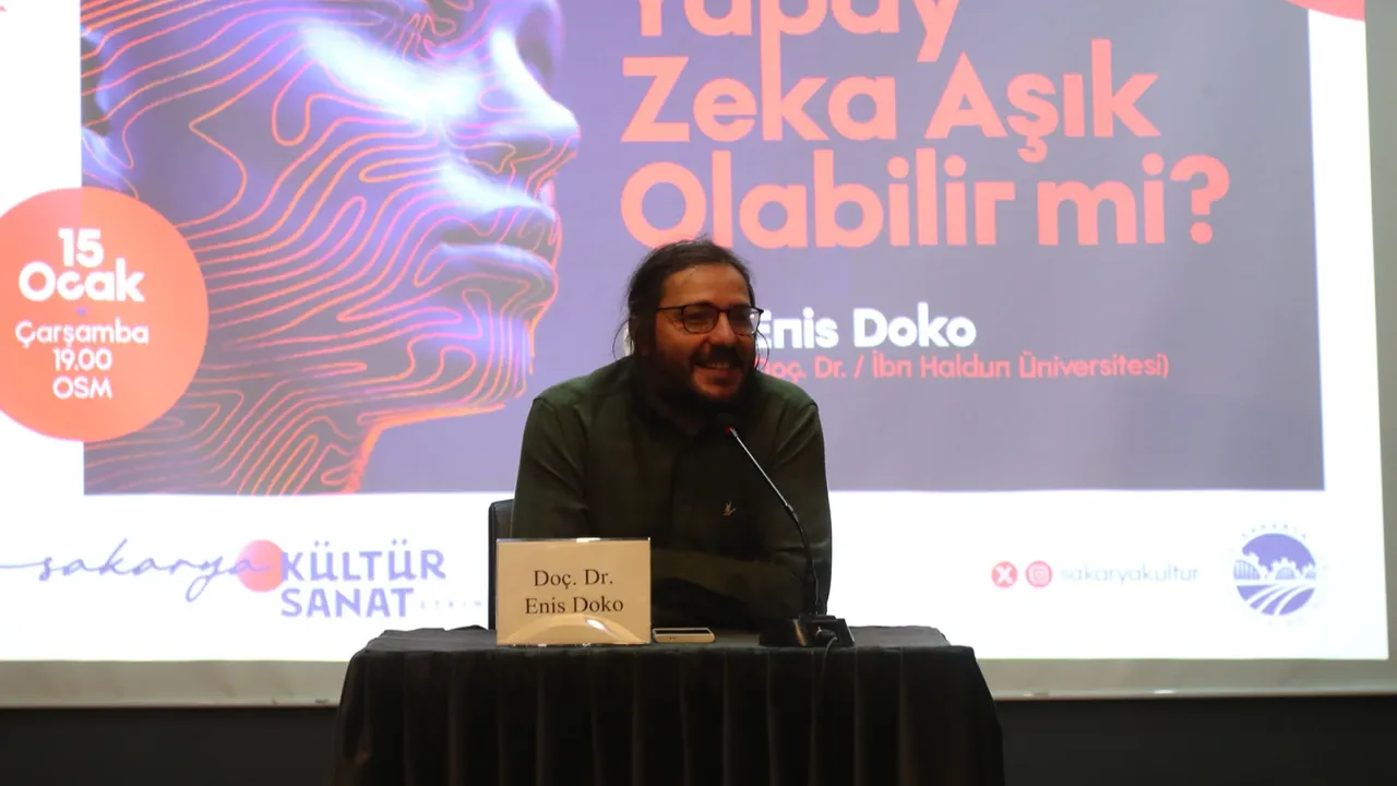 Sakarya Büyükşehir Belediyesi, Ocak Kültür Takvimi kapsamında Ofis Sanat Merkezi’nde (OSM) düzenlenen “Yapay Zekâ Aşık Olabilir mi?” söyleşisinde hayranlarıyla buluşan yazar Doç. Dr. Enis Doko, “Yapay zekâ, belirli veriler üzerinden verilen talimatlarla hareket eder” diyerek söyleşinin konusu olan soruya cevap verdi.SAKARYA (İGFA) - Sakarya Büyükşehir Belediyesi, her alanda Sakaryalıların bilgi birikimine katkı sunmak ve şehri sanatla, kültürle, sosyal yaşamla buluşturmak için mesai harcıyor.