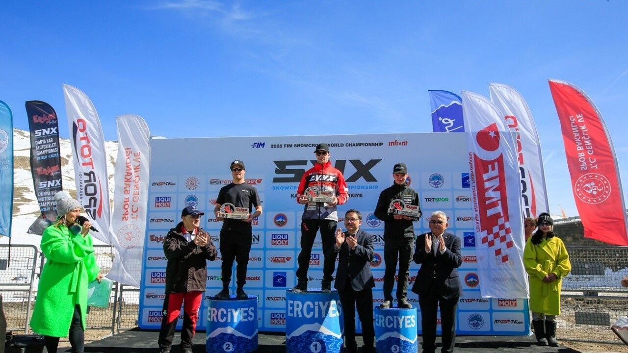 Dünya Kar Motosikleti Şampiyonası’nın ardından düzenlenen törenle dereceye giren sporculara ödülleri verildi. Kadınlar ve erkeklerde ilk 3’te yer alan sporculara ödüllerini Kayseri Valisi Gökmen Çiçek, Kayseri Büyükşehir Belediye Başkanı Memduh Büyükkılıç, Kayseri Milletvekili Dr. Murat Cahid Cıngı takdim etti. Düzenlenen törende açıklamalara bulunan Kayseri Valisi Gökmen Çiçek, "Muhteşem bir organizasyon yapıldı. SNX Kayseri’ye yakışıyor. Büyükşehir belediyesine, federasyon ekibine ve katılan sporculara teşekkür ediyorum. Her geçen sene üzerine koyarak şampiyonayı büyüteceğiz" dedi.