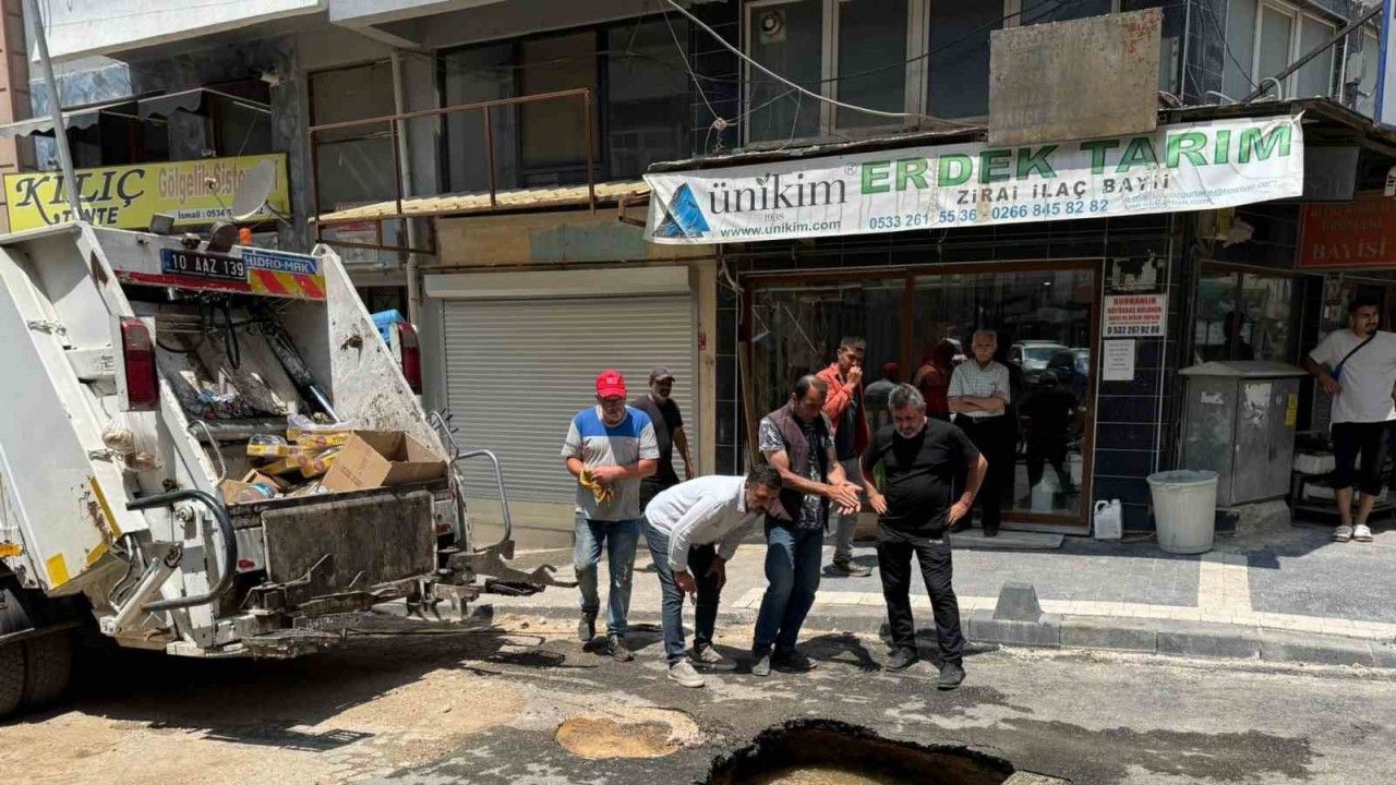 Balıkesir’in Erdek ilçesinde kısa süre önce alt yapı çalışmaları tamamlanarak asfaltla kaplanan Zübeyde Hanım Caddesi üzerindeki Kandil Çeşme Sokak girişinde yol çöktü. Olay, belediyeye ait bir çöp kamyonunun geçişi sırasında meydana geldi.