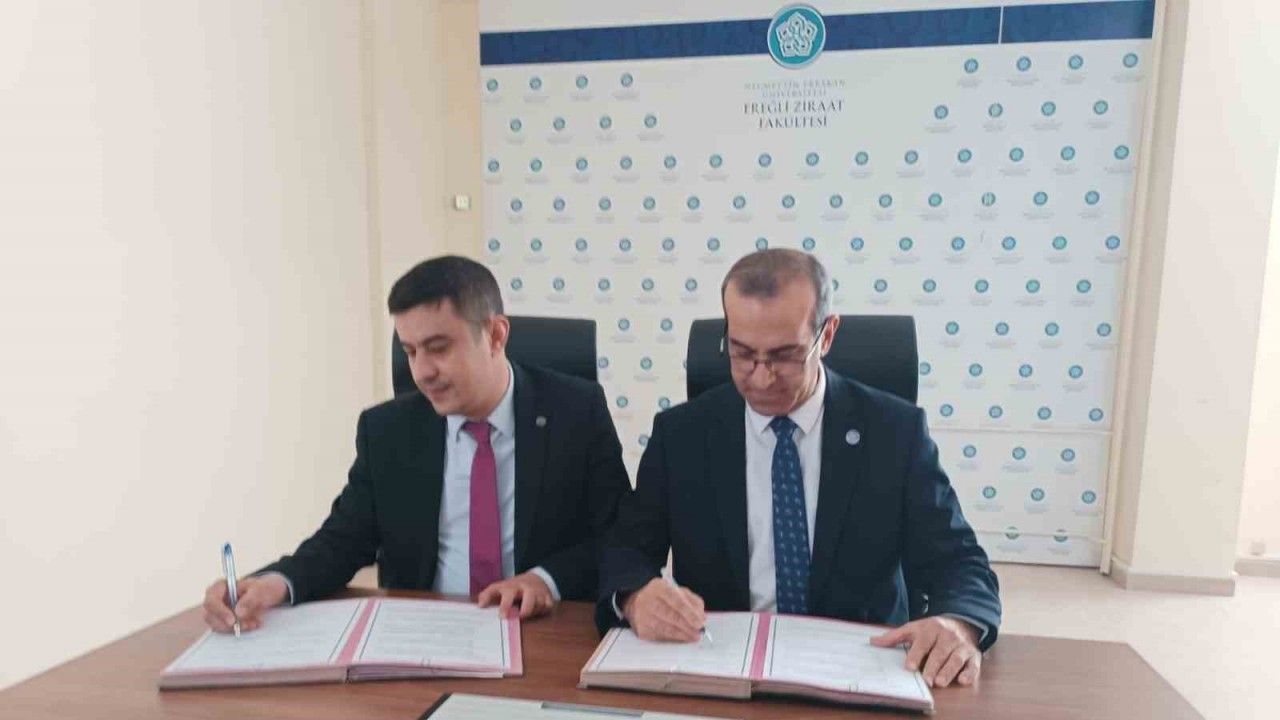 Ereğli İlçe Tarım ve Orman Müdürü Kamil Küçük ile Necmettin Erbakan Üniversitesi Ereğli Ziraat Fakültesi Dekanı Prof. Dr. Yaşar Karadağ arasında “Bitkisel üretim konularında çiftçi eğitimi” protokolü imzalandı. İlçe Tarım ve Orman Müdürü Küçük, protokol ile ilçe çiftçilerinin bitkisel üretim alanında bilgi ve donanımlarının artırılmasını, modern tarım yöntemlerinin yaygınlaştırılması ve üretimde verimliliğin artırılmasının hedeflendiğini belirtti. Küçük, desteklerinden dolayı Necmettin Erbakan Üniversitesi Ereğli Ziraat Fakültesi Dekanı Karadağ’a teşekkür etti. Protokolün ilçe çiftçisine hayırlı olması temennisinde bulunan Küçük, “Ereğli tarımı adına büyük önem taşıyan bu adımın, bölgedeki üreticilere önemli katkılar sunacağına inanıyoruz” dedi.