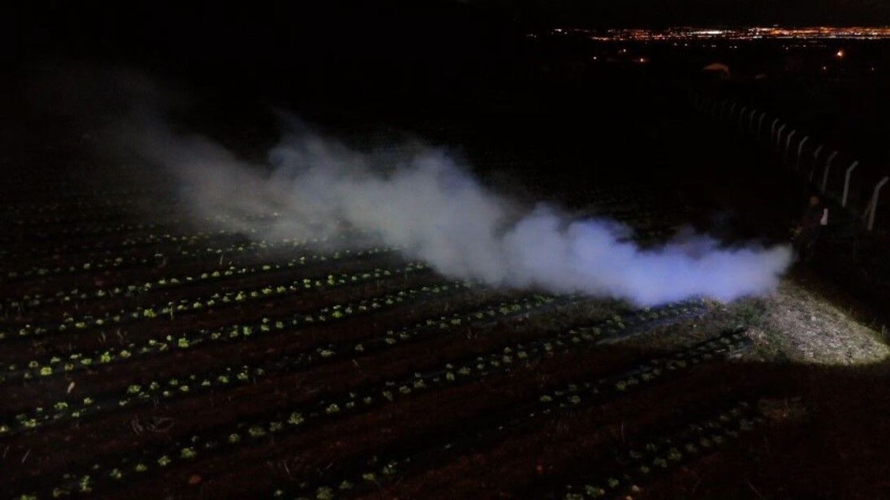 Çiftçiler, gece boyunca yaktıkları ateşlerle oluşturdukları duman sayesinde bahçelerdeki sıcaklığı koruyarak donun etkisini azaltmaya çalıştı.