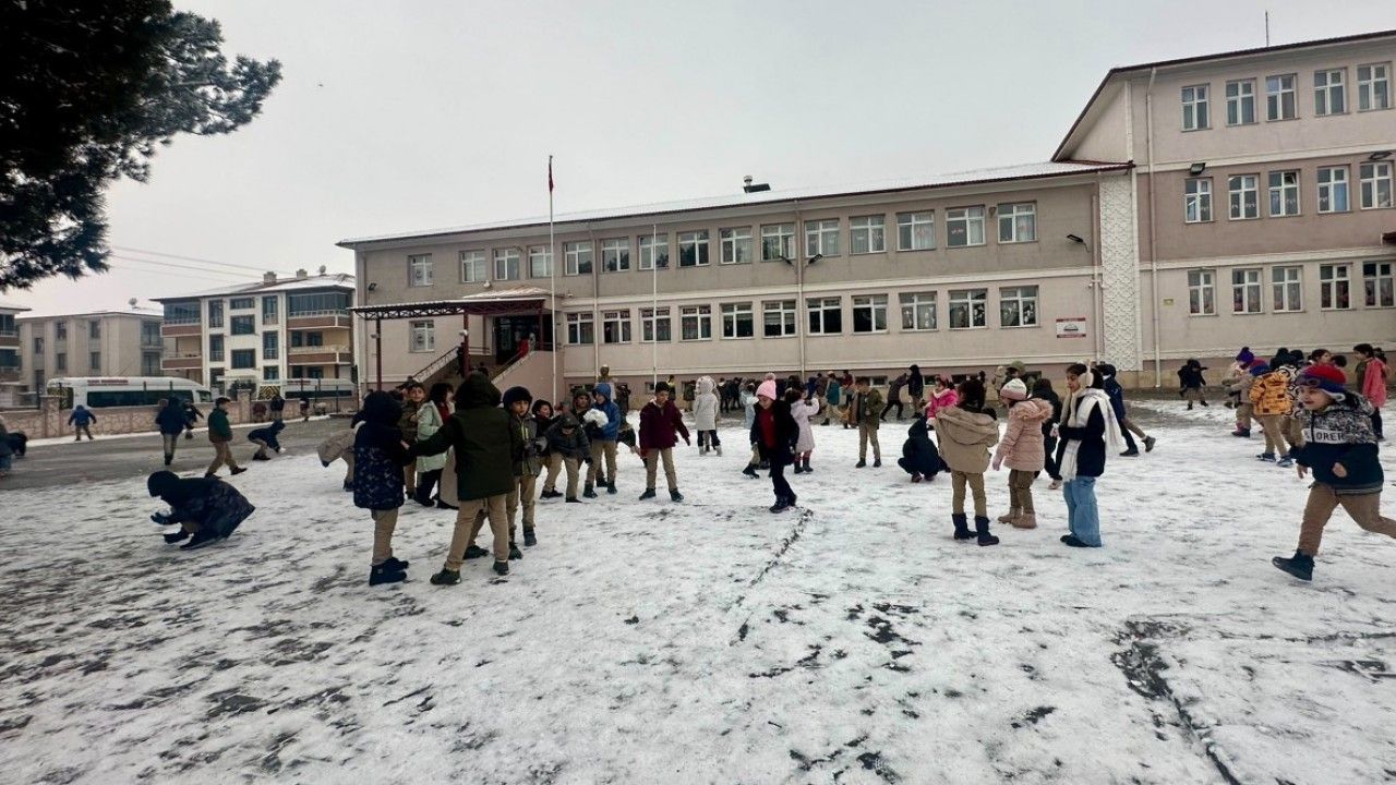 Kentte kar yağışı vatandaşa çile olurken, okul bahçesinde kartopu oynayan çocuklara ise neşe oldu. Tenefüs zilinin çalmasıyla okul bahçesine akın eden çocuklar kartopu oynayarak karın keyfini çıkardı.