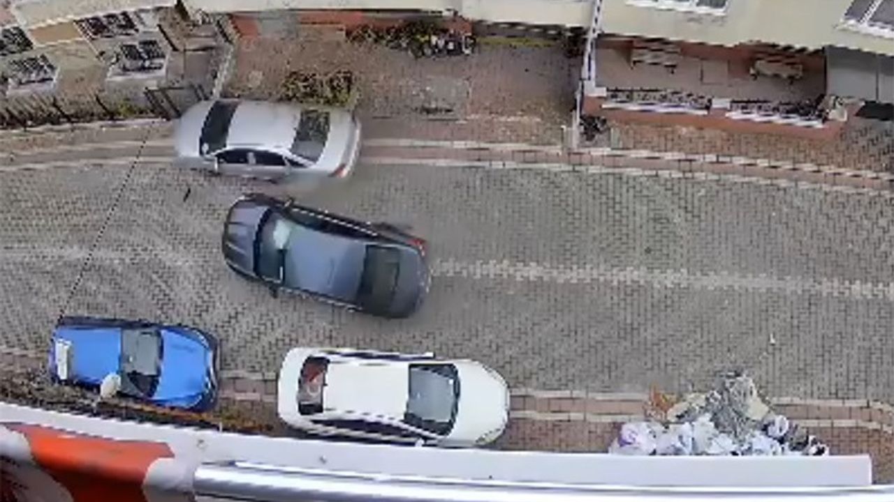 Esenyurt’ta sokak arasında hızlı giden araç park halinde bulunan bir araca çarptıktan sonra kaçtı. Kaza anı anbean güvenlik kamerasına yansıdı.