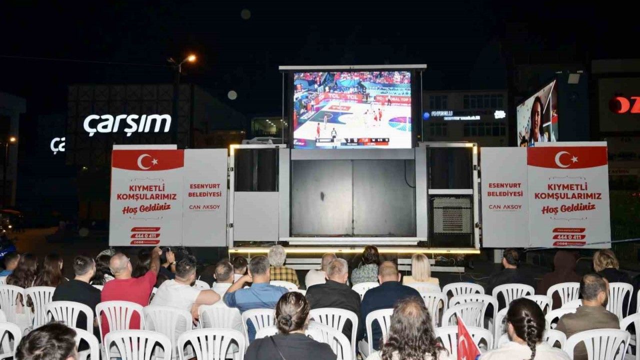 Esenyurt Cumhuriyet Meydanı’nda kurulan dev ekranda binlerce vatandaş, Türkiye-Yunanistan EuroBasket yarı final maçını büyük bir heyecanla izledi. 12 Dev Adam tarihi bir zafere imza atarak finale yükseldi.