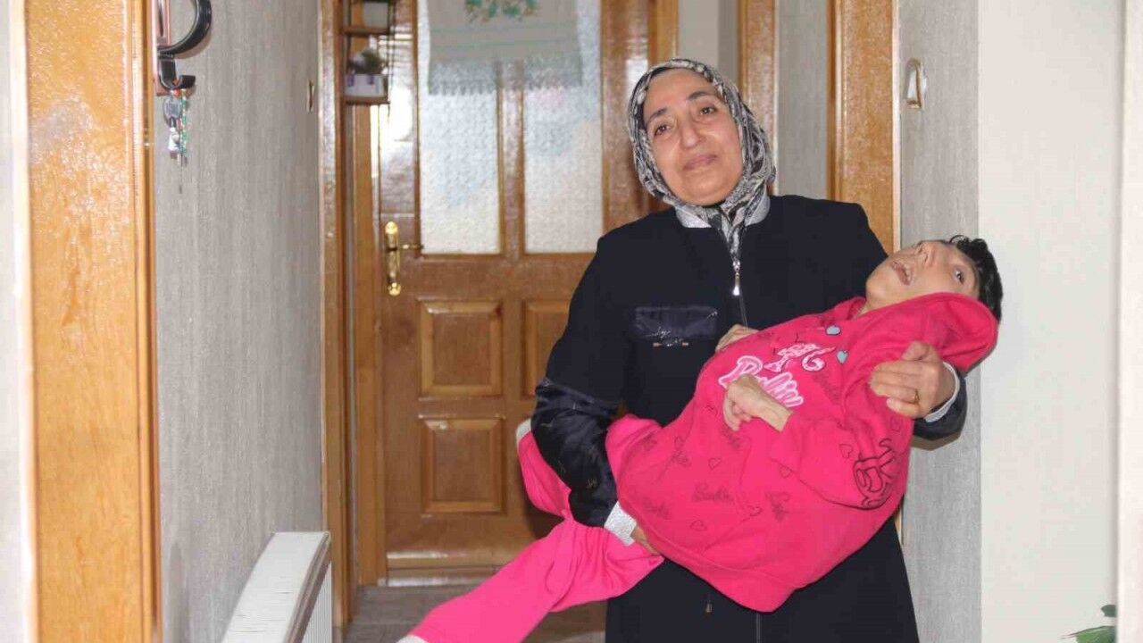 Kızı Sevgi’nin doğuştan bu yana engelli olduğunu belirten Arzuman Uçar, engelli çocuğuna 33 yıldır tek başına baktığını ifade etti. Bütün hayatını bakıma muhtaç çocuğuna adayan ve neredeyse 24 saatini evde geçiren Uçar, "Çocuğum 33 yaşında, engelli. Doğumda kafasındaki bıngıldak kemiği birleşmiş, o kemiğin yerine de su birikmiş. Erzurum’da ameliyat ettirdik ama doktorlar bize dedi ki, ‘Bu çocuğun vücudu hiç gelişmez.’ O yüzden bu şekilde devam ediyoruz. Oturamıyor, göremiyor ama duyabiliyor, anlayabiliyor. Mesela kapıdan içeri biri girince sesine tepki veriyor. Acıktığı zaman ağlar, altı ıslandığı zaman huzursuz olur, öyle olunca da zaten anlıyorsunuz. Sadece sıvı yiyebiliyor, katı yiyemiyor. O yüzden çorbayla besliyorum. Sabahları kalkınca ilk onunla ilgileniyorum. Altını değiştiririm, mamasını yediririm, giydiririm. 2-3 günde bir banyosu var, onu yaptırırım. Geri kalan vakitlerde de kendi işlerimle, evin işleriyle uğraşırım. Bütün gün onunlayım, 24 saatim evde geçiyor" ifadelerini kullandı.