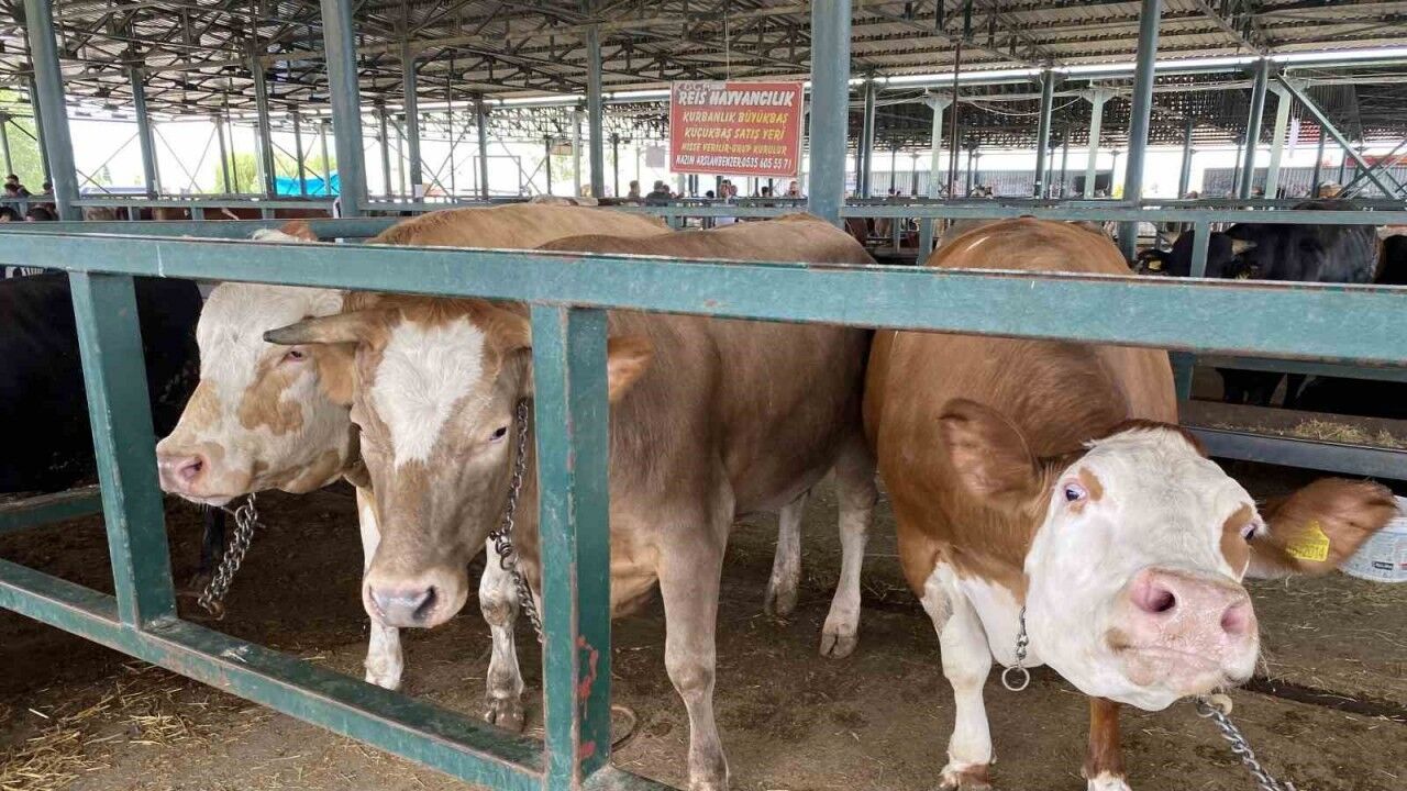 Kurban Bayramı’na sayılı günler kaldı. Eskişehir Büyükşehir Belediyesi Hayvan Pazarı’nda yetiştiriciler ve müşteriler arasında sıkı pazarlıklar yapılırken, yaklaşık 750 kilo ağırlığındaki 3 düve ilgi odağı oldu. Heybetli görünümüyle dikkat çeken düvelerin alıcılarını beklediği belirtildi.