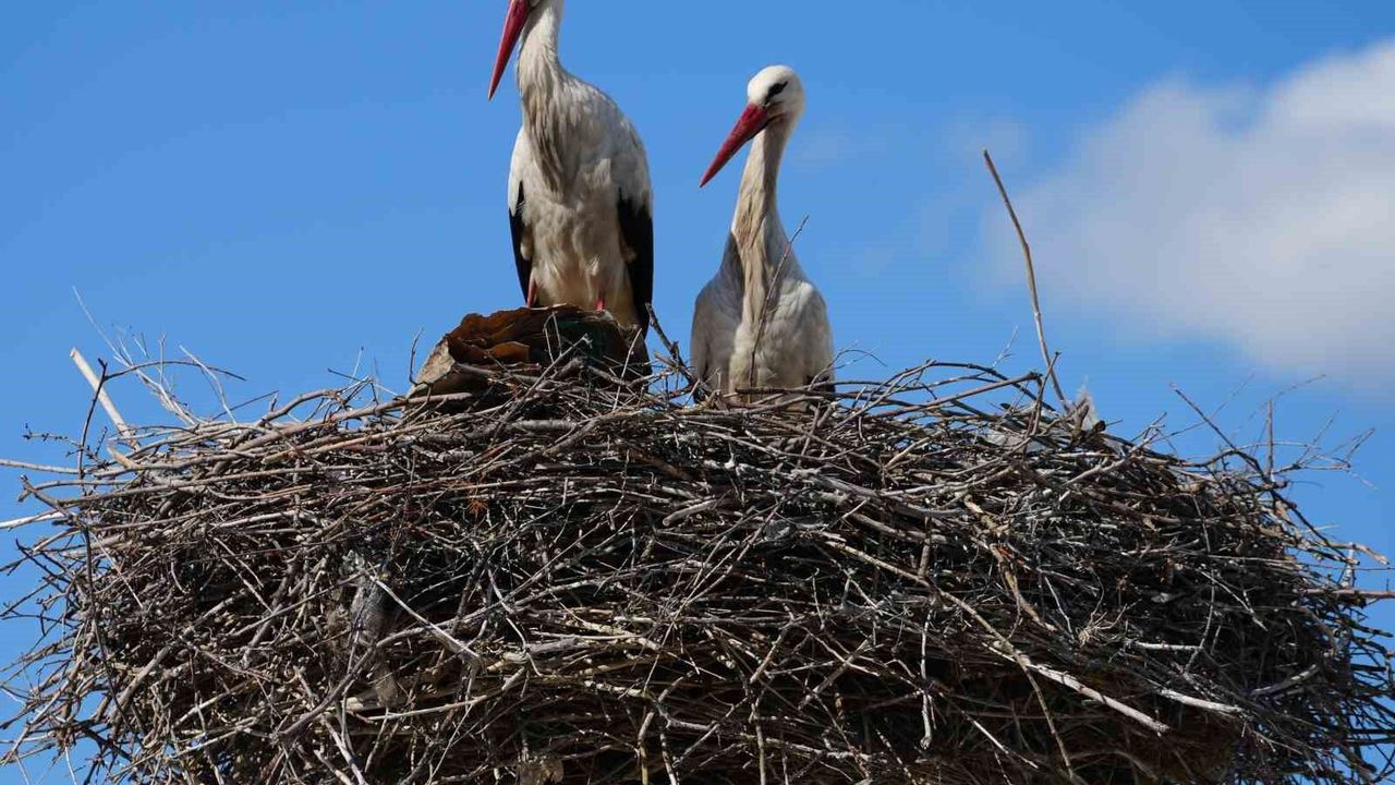 Kırıkkale'de esnafın 'Rüzgar' ile 'Nergis' adını verdiği iki leylek, 4'üncü yılında da aynı yuvaya döndü.