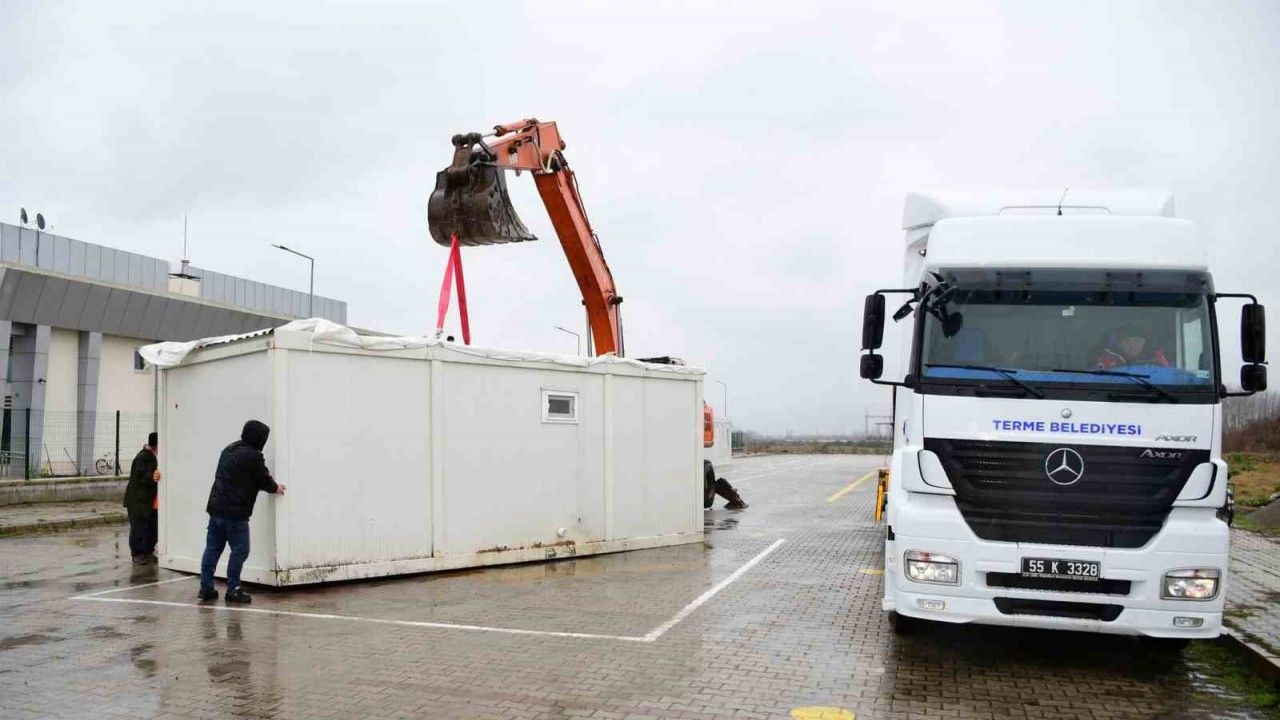 Terme ilçesi Gölyazı Mahallesinde Cengiz Şen, Ayşe Şen ile Emine Şen isimli vatandaşların yaşadığı evde dün saat 13.30 sıralarında yangın çıktı. Bugüne kadar merkez, ilçe, mahalle, mesafe fark etmeksizin evlerini afet ve yangın gibi olaylarda kaybeden ailelerin yanında olan Terme Belediye Başkanı Şenol Kul, ilk olarak aileye geçici olarak barınmaları için konteyner ev ulaştırdı. Belediye Fen İşleri Müdürlüğü ekipleri tarafından içinde tuvalet, banyo ve mutfak bulunan konteyner ev vinç yardımıyla yanan evin yanına monte edildi. Belediye ekipleri konteyner çevresinde düzenleme çalışması gerçekleştirdi.