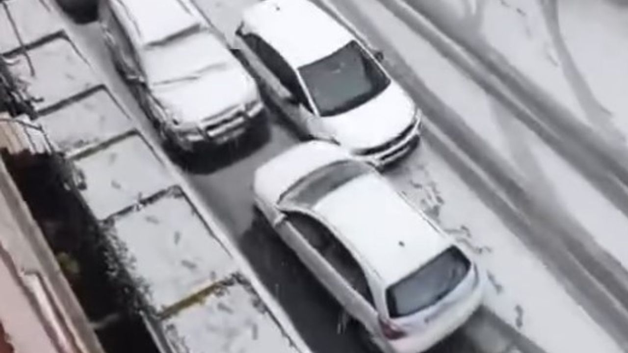 Eyüpsultan’da aralıklarla etkili olan kar yağışı beraberinde kazaları da getirdi. Yokuş aşağıya kayarak ilerleyen otomobil, park halindeki araçlara çarptı. Yaşanan kaza anı ise cep telefonu kamerasına yansıdı.