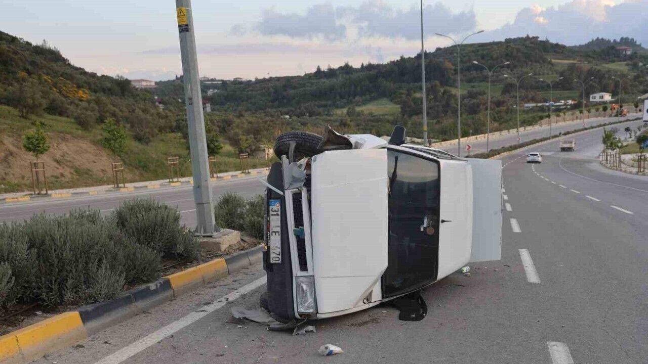 Hatay’ın Antakya ilçesinde kaldırıma çarparak yan yatan Fiat Tofaş marka otomobildeki 4 kişi yaralandı.