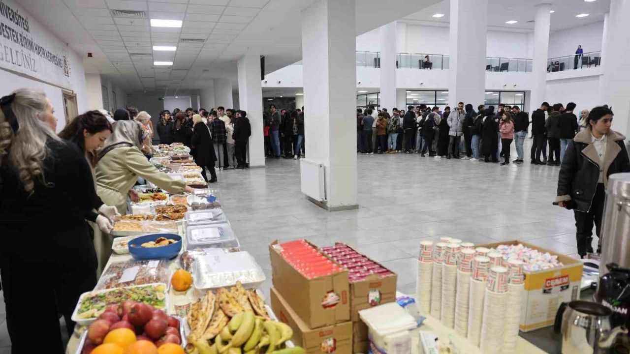 Son dört yıldır geleneksel hale gelen bu etkinliği anlamlı bulduklarını ve etkinliğin sınav dönemindeki öğrencilere büyük moral olduğunu ifade eden Rektör Prof. Dr. Göktaş, ’’Özellikle son dört yıldır artık üniversitemizde geleneksel hale gelen öğrencilerimizin final döneminde sınavlara moral ve motivasyonla hazırlanmaları için üniversitemiz kadın kolları tarafından evlerle yemek, pasta ve börekler hazırlayarak öğrencilerimize katkıda bulunuyorlar. Her şeyden önce üniversitemiz kadın kollarına teşekkürlerimi sunuyorum. Ayrıca öğrencilerimize de finallerde başarılar diliyorum. Yine öğrencilerimiz de büyük bir ilgi gösteriyorlar. Bir çok öğrencimiz uzun süre ailesinden ayrı kalmakta. Dolayısıyla ev yemeklerini , annelerinin pastalarını, böreklerini, keklerini özlüyorlar. Bu vesileyle kadın kolları bu öğrencilerimize dokunduğu için tekraren onlara teşekkür ediyorum’’ dedi.