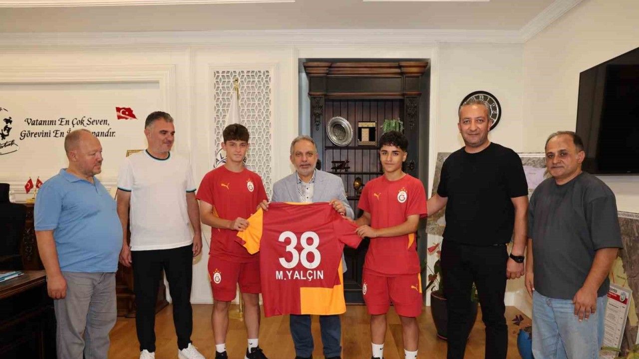 Talas Belediyespor altyapısından yetişerek Galatasaray’a transfer olan genç futbolcular Muhammet Mustafa Cingöz ve Mehmet Emin Dabaz, aileleriyle birlikte Talas Belediye Başkanı ve Talas Belediyespor Onursal Başkanı Mustafa Yalçın’ı makamında ziyaret etti.