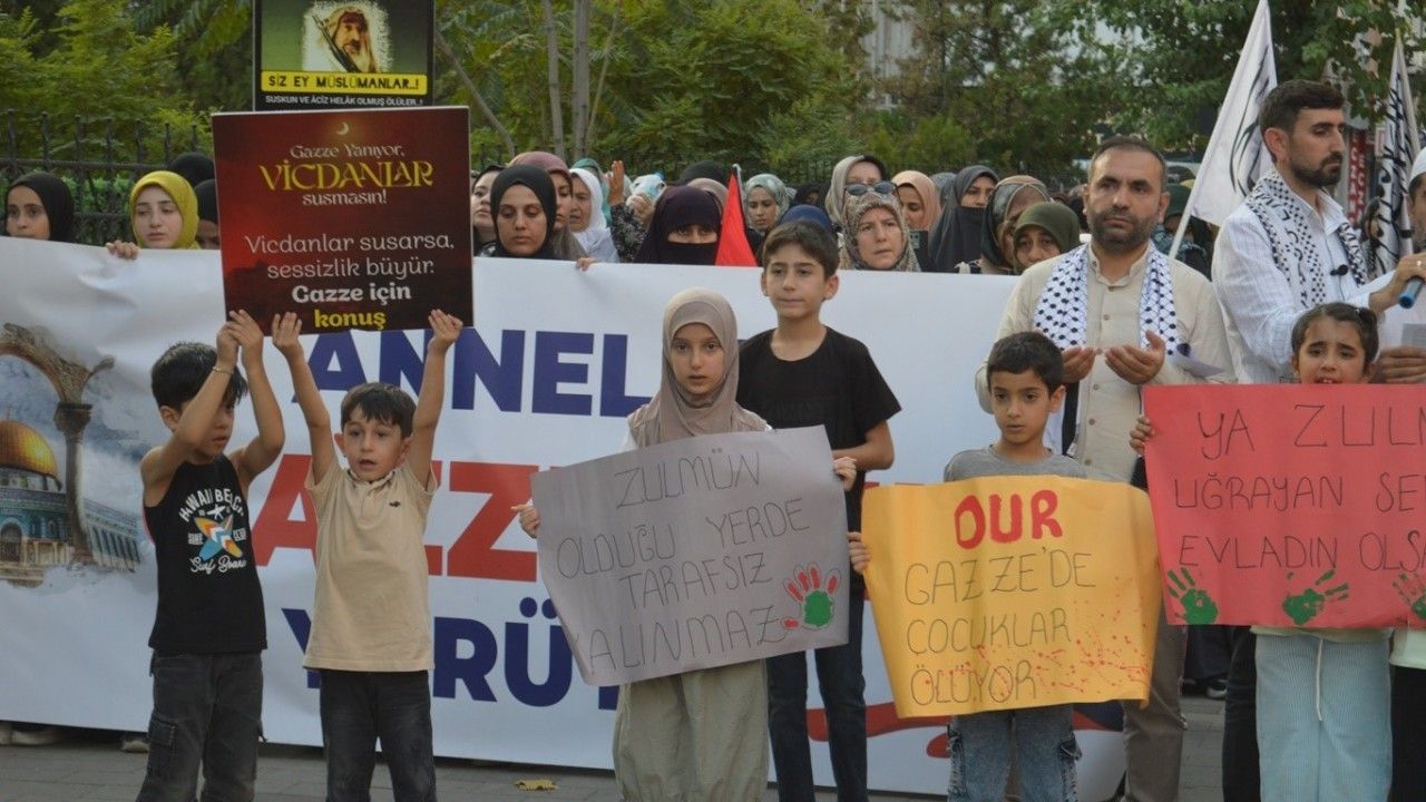 Siirt’te Peygamber Sevdalıları tarafından "Gazze Ölüyor, Ayağa Kalk" başlığıyla düzenlenen eylemde, Gazze’de yaşanan soykırıma tepki gösterildi.