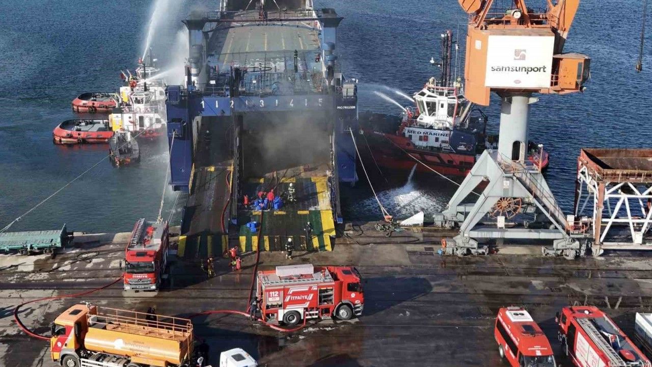 Samsun Limanı’ndaki kuru yük gemisinde çıkan yangın, ekiplerin yoğun çalışması sonucu iki saatte söndürüldü.