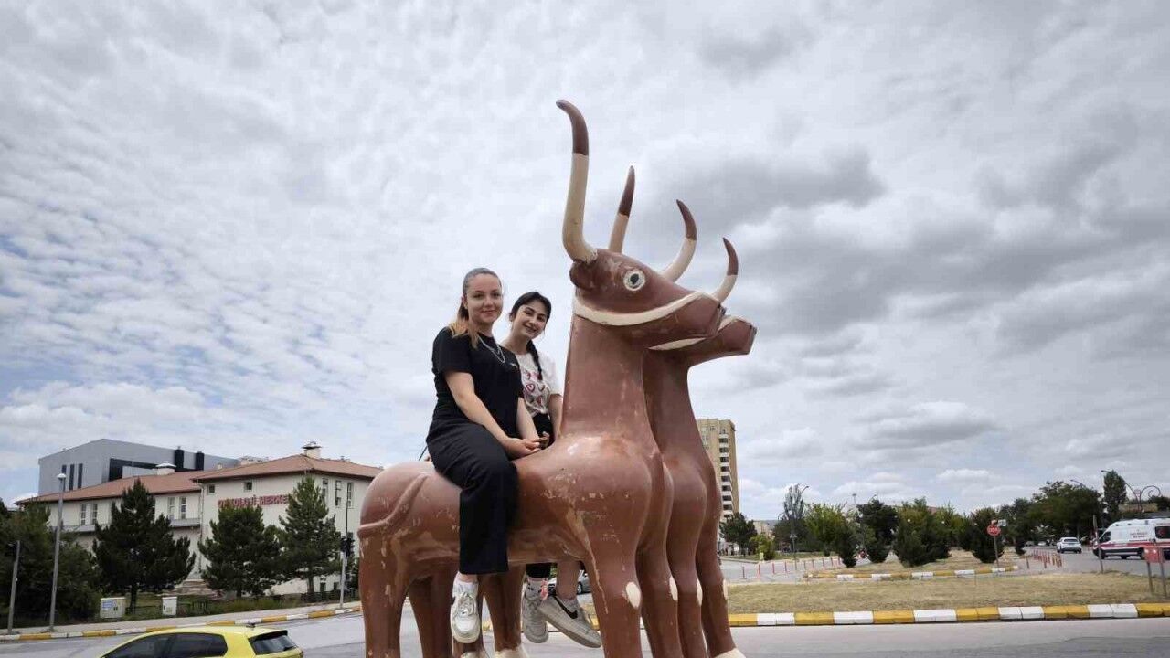 Üniversite öğrenimlerini tamamlamak için Sivas’a giden iki arkadaş, mezun olduktan sonra yaptıkları ile dikkat çekti. Sivas Cumhuriyet Üniversitesi girişinde bulunan ve ünlü ikiz boğa figürünün heykeline çıkan iki kafadar, görenleri gülümsetti. Sarissa Antik Kenti kazılarında, yan yana bir vaziyette bulunan ve aslı Sivas Arkeoloji Müzesi’nde sergilenen heykele çıkarak mezuniyetlerini kutlamak istediklerini ifade eden iki arkadaş, "Gitmeden önce şehri biraz daha yüksekten izleyelim dedik. Buradan herkesi iyi izliyoruz. Gayet eğlenceli" dedi.