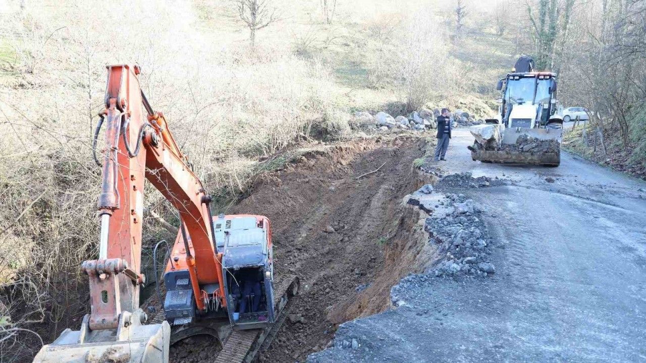 Düzce il Özel İdaresi Yol ve Ulaşım Hizmetleri Müdürlüğü ile Gölyaka Özel İdare Müdürlüğü ekipleri, Saçmalıpınar Köyü bölgesinde meydana gelen heyelan sonrasında, yol güvenliğini sağlamak amacıyla çalışmalarını sürdürüyor. Ekipler, çöken yolun onarımı için yoğun çaba harcıyor.