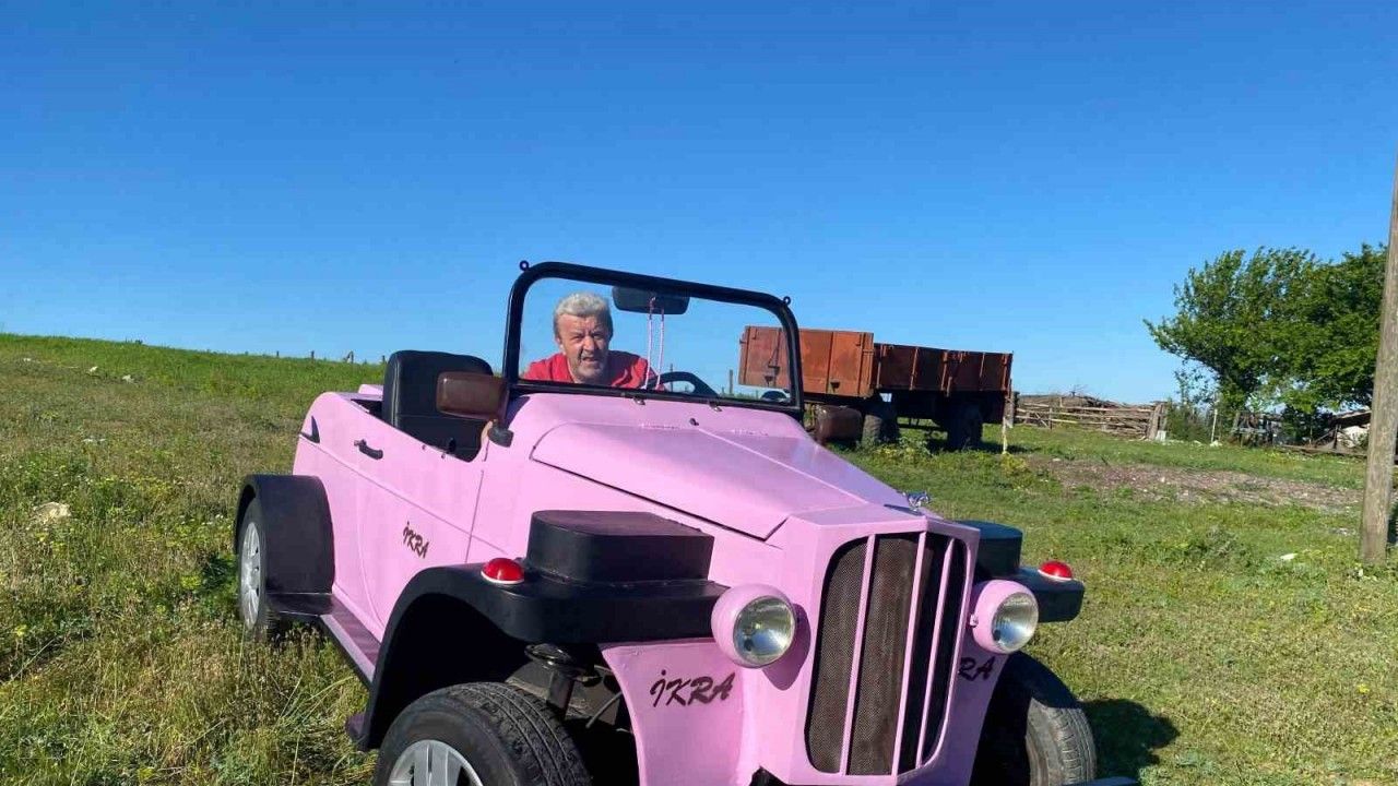 Kandıra ilçesi Ağaçağıl Mahallesi’nde yaşayan, evli ve 2 çocuk babası Ramazan Şentürk, pandemi döneminde uzun yıllardır kurduğu hayalini gerçeğe dönüştürdü. 3 metre 15 santim uzunluğunda, 1 metre 6 santim genişliğinde ve saatte 30-40 kilometre hız yapabilen aracı tamamen kendi imkanlarıyla yapan Şentürk, otomobilin motorunda çapa makinesi kullandı. 15 günde kaportasını tasarlayan Şentürk, klasik görünüm kazandırdığı otomobiline gözü gibi bakıyor. Pembe rengiyle dikkatleri üstüne çeken otomobile Ramazan Şentürk, Arapça’da "Oku" anlamına gelen "İkra" ismini verdi.