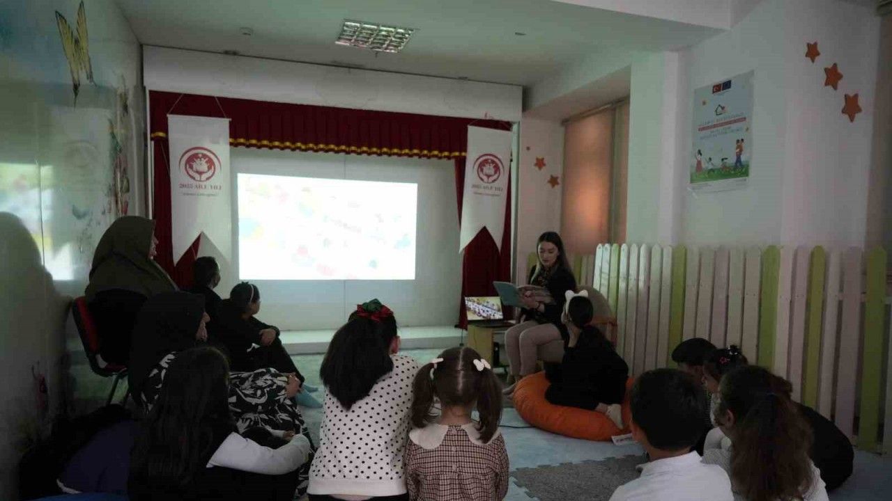 2025 Aile Yılı etkinlikleri kapsamında düzenlenen etkinlikte veliler ve çocukları birlikte kitap okuyarak verimli bir gün geçirdi. Etkinlik kapsamında ayrıca çocuklara Masal Atölyesi’nde hikayeler okundu.