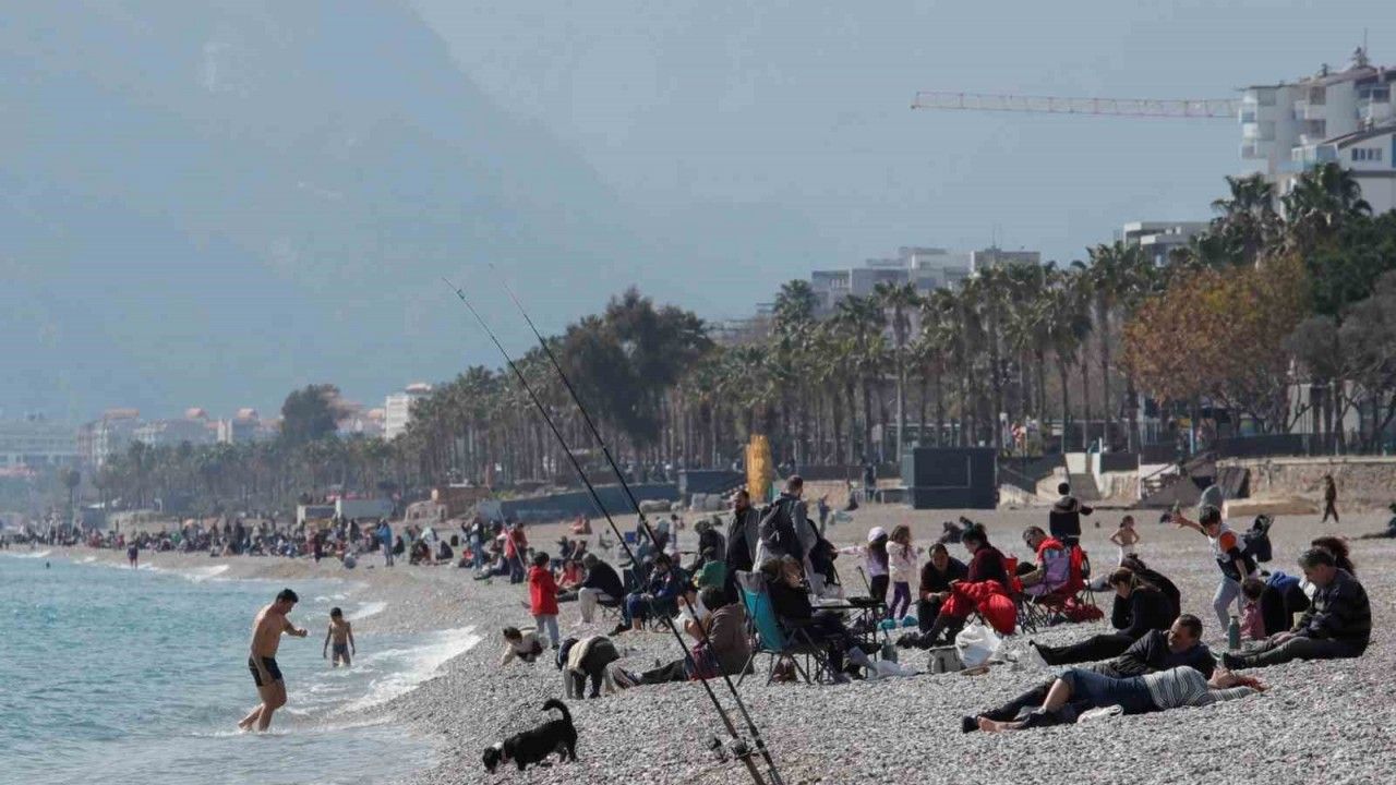 Türkiye’nin turizm merkezi Antalya’da Mart ayının gelmesi ile birlikte hava sıcaklıkları mevsim normallerine dönmeye başladı. Bahar havasının yaşandığı kentte güneşli ve sıcak havayı fırsat bilen kent sakinleri ve yabancı turistler Pazar gününü yürüyüş yaparak ve Konyaaltı Sahili’nde değerlendirdi. Kimi vatandaşlar sahilde yürüyüş yaparken, kimileri ise yanlarında getirdikleri kamp sandalyeleri ile sahilde oturmayı tercih etti. Hava ve deniz suyu sıcaklığının 18 derece olarak ölçüldüğü Antalya’da Mart ayı olmasına rağmen havaya aldırış etmeden denize giren vatandaşlarda olduğu görüldü.