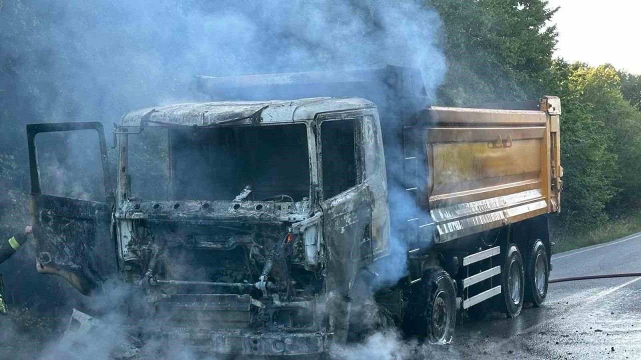 Olay, saat 18.00 sıralarında Kutluca Mahallesi Eski İstanbul Yolu’nda meydana geldi. Edinilen bilgilere göre, seyir halindeki hafriyat kamyonunda henüz bilinmeyen bir nedenle yangın çıktı. Dumanları fark eden sürücü aracı durdurarak dışarı çıktı. Kısa sürede büyüyen alevler yol kenarındaki otluk alana da sıçradı.
