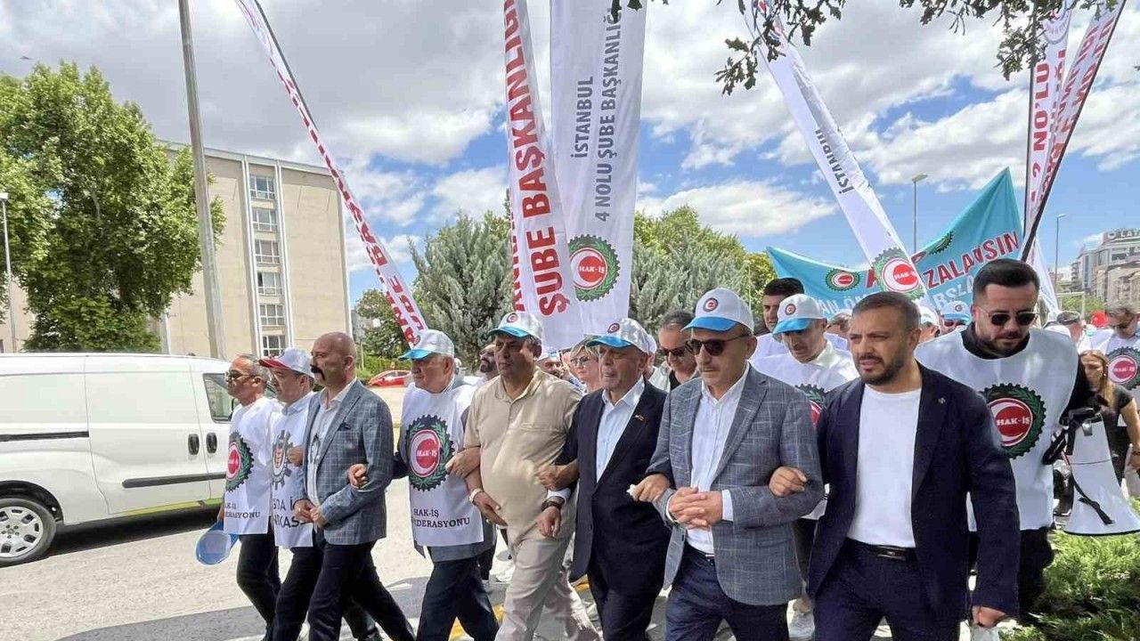 Hak İşçi Sendikaları Konfederasyonu (HAK-İŞ) tarafından Kamu Toplu İş Sözleşmeleri Çerçeve Protokolü’nde (KÇP) işçilerin taleplerinin karşılanması için Hazine ve Maliye Bakanlığı’na yürüyüş ve basın açıklaması düzenlendi.