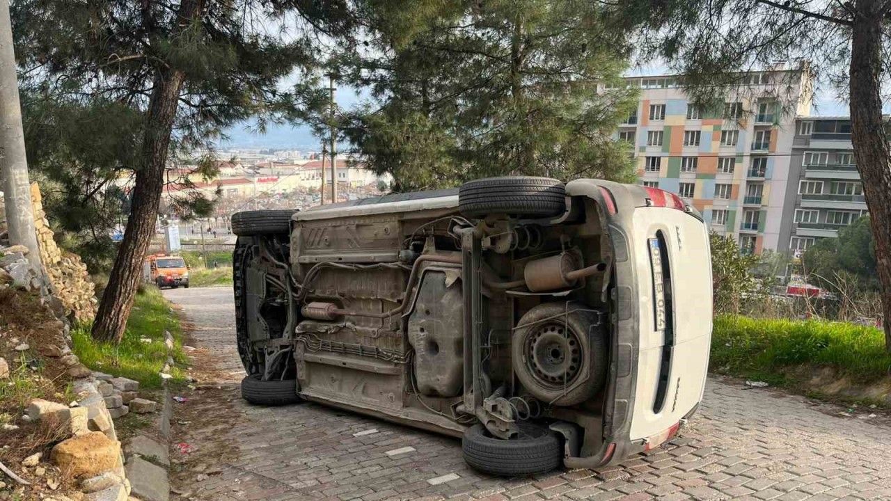 Aydın’ın Efeler ilçesinde kontrolden çıkan ticari araç, savrularak yan yatarken kazada bir kişi yaralandı.
