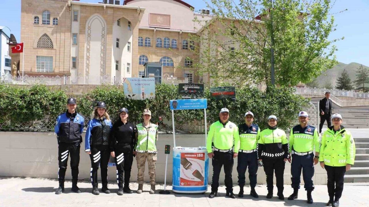 Hakkari’de Trafik Haftası etkinlikleri kapsamında emniyet ve jandarma ekiplerinin işbirliğiyle bilgilendirme faaliyetleri yürütülüyor.