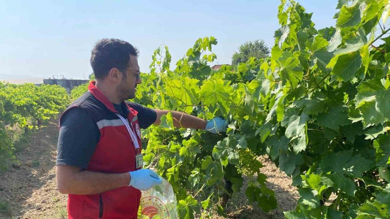 2025 yılı Hasat Öncesi Pestisit Denetimi kapsamında bağlardan asma yaprağı numune alımlarının devam ettiğini ifade eden Sarıgöl İlçe Tarım ve Orman Müdürü Ahmet Akar, "Ekip arkadaşlarımız tarafından üzüm hasadı öncesi üzüm bağlarından taze bağ yaprağı alınarak pestisit kalıntısı olup olmadığı incelenmektedir. Çalışmalarımız hasat öncesine kadar devam edecektir." dedi.
