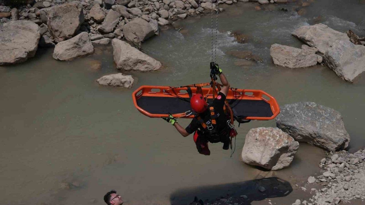 Tatbikatta, iki yamaç arasına kurulan havai hat sistemi üzerinden yapılan kurtarma operasyonunda; kurtarma ekibi, suyun ortasında mahsur kalan bir kazazedeyi sedyeye alarak hat üzerinden aşağıya indirdi ve güvenli bir şekilde tahliye etti. Senaryo, gerçeğe yakın şartlarda başarıyla tamamlandı.