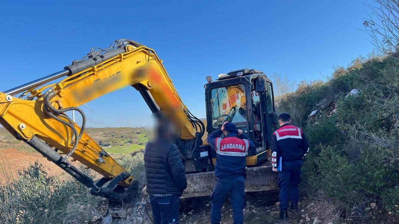 Aydın’ın Didim ilçesinde hazine arazisinde iş makinesi ile kazıyı jandarma ekipleri engelledi.