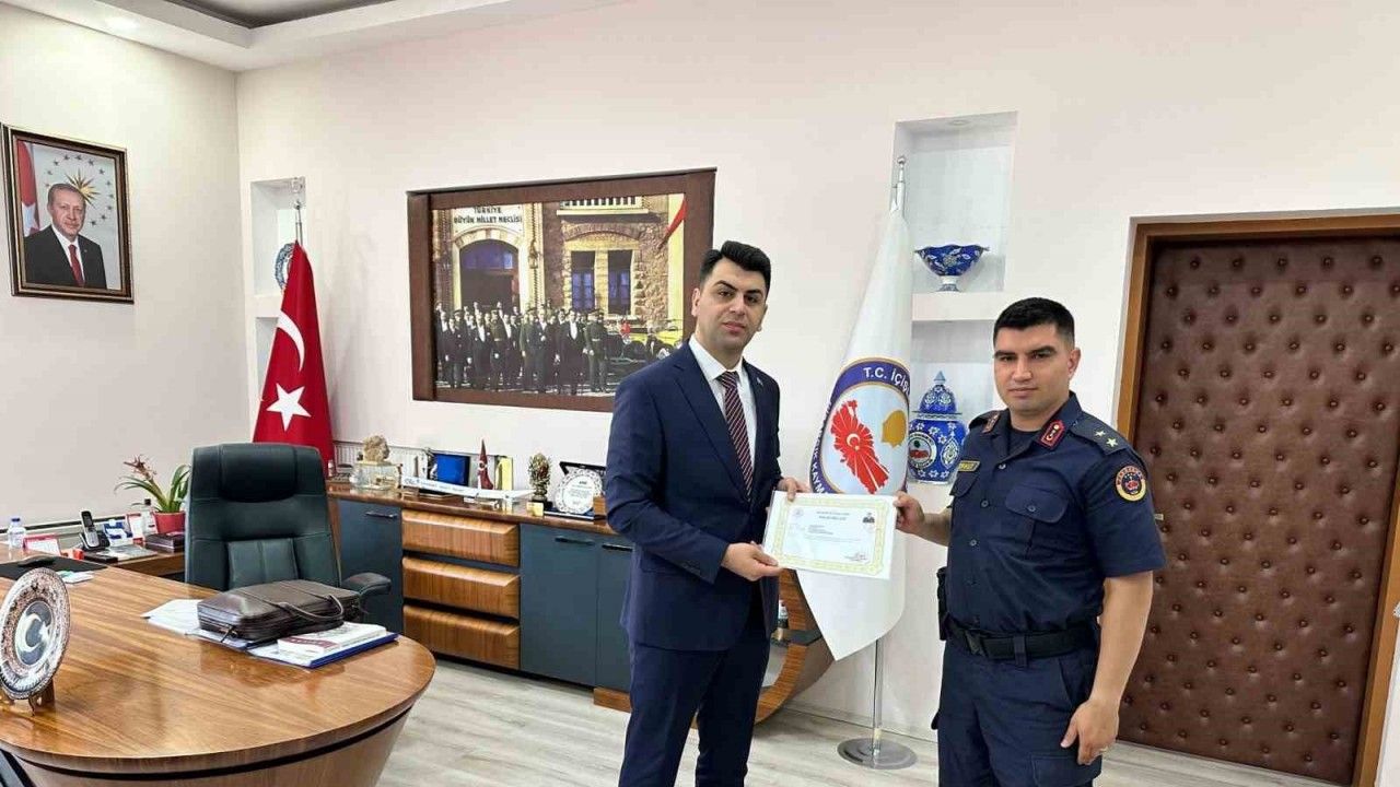 Kaymakam Bahar, görev yerleri değişen İlçe Jandarma Komutanı Üsteğmen Alperen Korkut, Karakol Komutanı Jandarma Astsubay Üstçavuş Yücel Türkmen ve yakın koruma Uzman Çavuş Alican Eryılmaz’a vermiş oldukları hizmet ve özverili çalışmalarından dolayı başarı belgesi vererek yeni görevlerinde başarılar diledi.