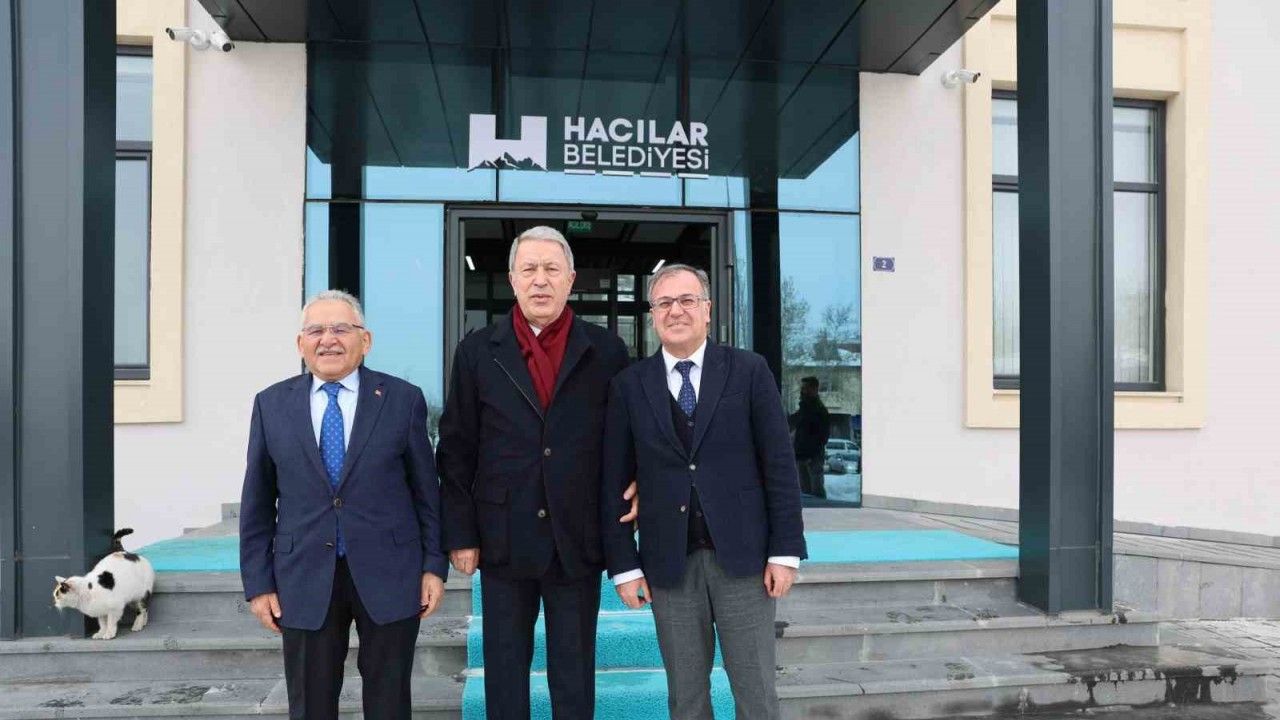 TBMM Millî Savunma Komisyonu Başkanı ve AK Parti Kayseri Milletvekili Hulusi Akar, Kayseri Büyükşehir Belediye Başkanı Memduh Büyükkılıç ile Hacılar Belediye Başkanı Bilal Özdoğan’ı makamında ziyaret etti. Ziyarette, Hacılar’da devam eden projeler değerlendirildi ve yeni yatırımlar hakkında istişarelerde bulunuldu.