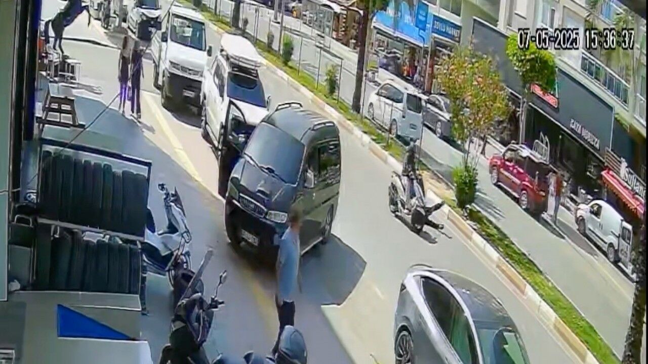 Antalya’nın Manavgat ilçesinde araçların arasından yaya olarak yola çıkan 86 yaşındaki adam, motosikletin çarpması sonucu yaralandı. Aynı caddede 40 dakika içerisinde meydana gelen ikinci kazada, otomobile çarpmamak için devrilen motosiklet sürücüsü yaralandı. Her iki kaza da güvenlik kameraları tarafından saniye saniye görüntülendi.