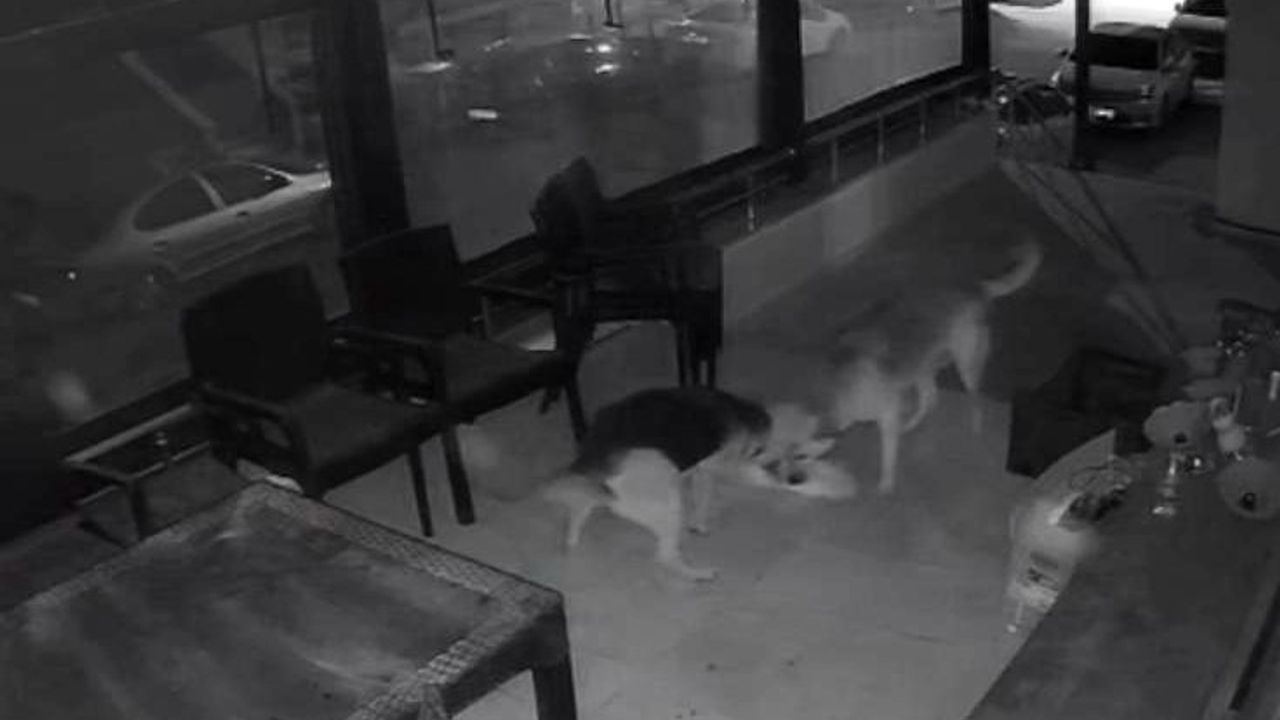 Sakarya’nın Karasu ilçesinde gece saatlerinde sahipsiz sokak köpeklerinin, bir binanın girişinde yakaladıkları kediye saldırdıkları anlar güvenlik kamerasına yansıdı.