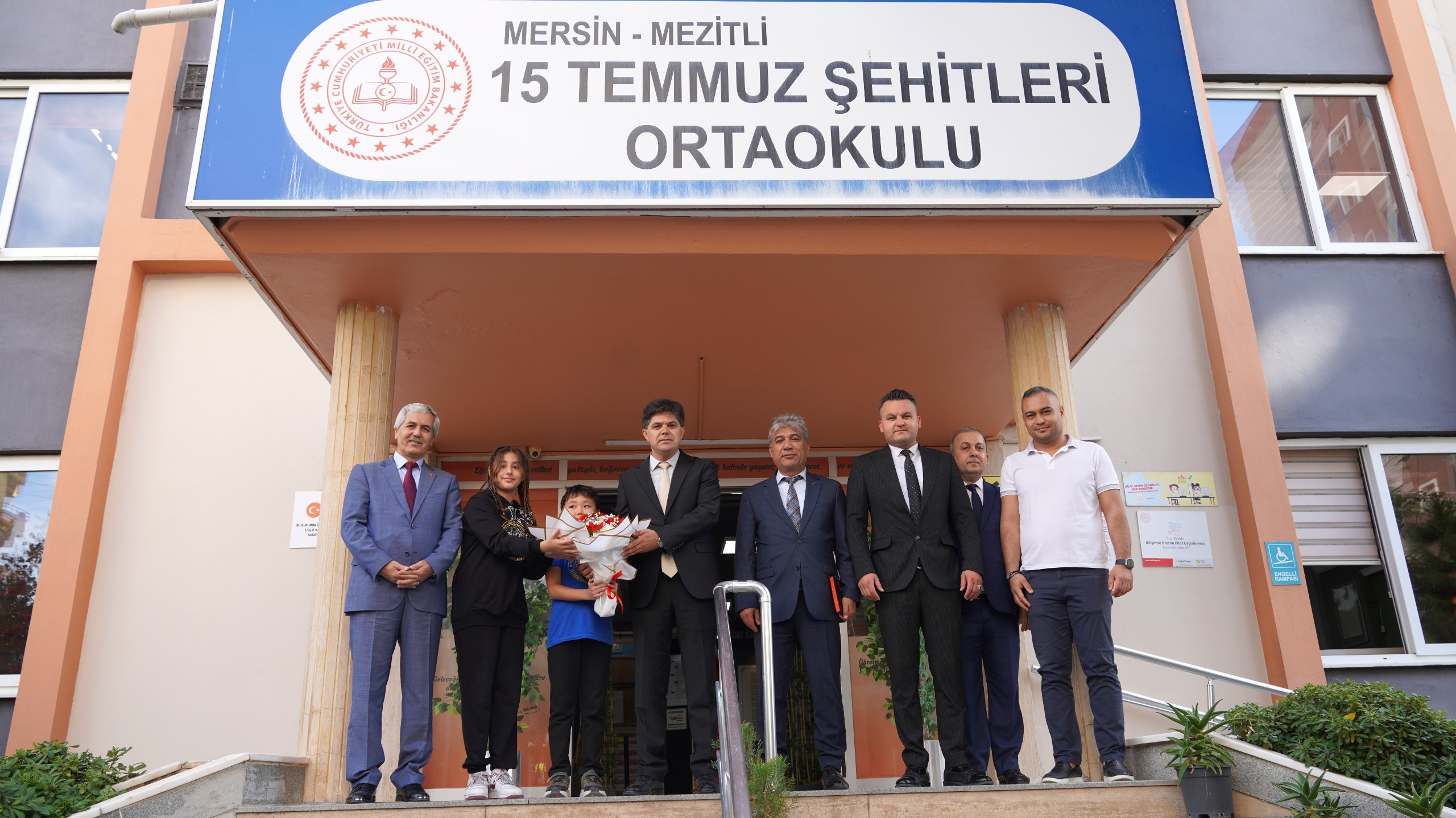 Okul ziyaretlerinde İl Millî Eğitim Müdürü Muhammed Özdemirci'ye Mezitli İlçe Millî Eğitim Müdürü Mehmet Badas, İl Millî Eğitim Şube Müdürleri Bayram Duman ve Önder Sarı eşlik etti.