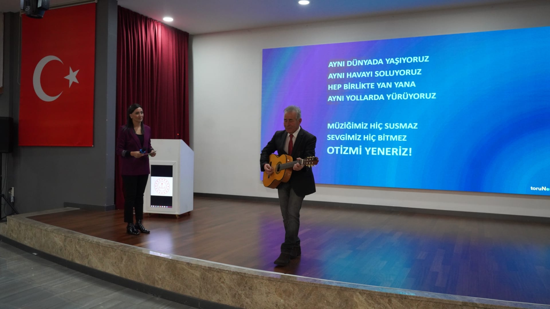 Tıp Profesörü ve Nöroloji Uzmanı Prof. Dr. Şükrü Torun’un danışmanlığında gerçekleştirilen program, Prof. Dr. Torun’un sunduğu “Otizm – Beyin ve Müzik İlişkileri – Müzik Eğitiminin Otizm Üzerindeki Etkileri” konulu sunumla başladı. Sunumda, müziğin otizmli bireylerin bilişsel, duygusal ve sosyal gelişimine katkıları bilimsel veriler ışığında ele alındı.