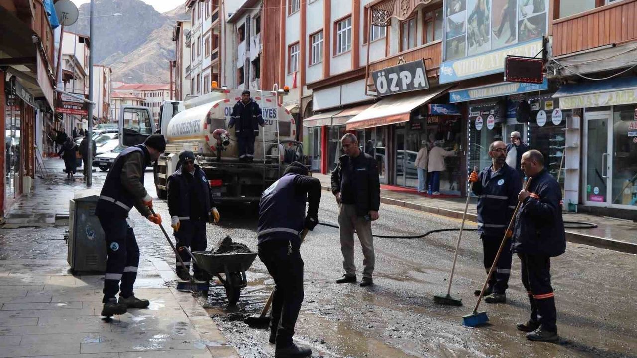 Erzurum'un Oltu ilçesinde, Ramazan Bayramı öncesinde belediye ekipleri tarafından cadde ve sokaklarda kapsamlı temizlik çalışması başlatıldı.