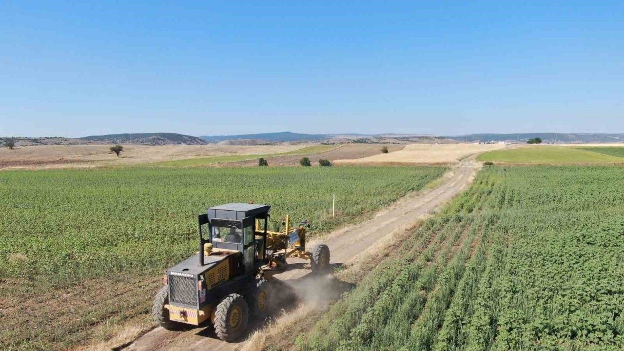 Eskişehir İnönü Belediyesi tarafından kırsal kesimde ürününü hasat edecek üreticiyi ürünlerini tarladan daha rahat çıkartması için bozulan tarla yollarının düzeltme çalışmaları devam ediyor.