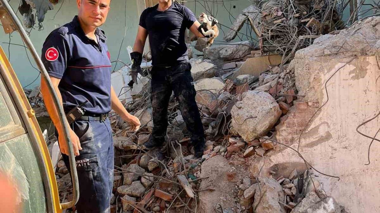 Balıkesir’in Edremit ilçesinde bulunan bir inşaat yıkım alanında sıkışan yavru kedi, duyarlı vatandaşların ihbarı üzerine itfaiye ekiplerinin müdahalesiyle kurtarıldı.
