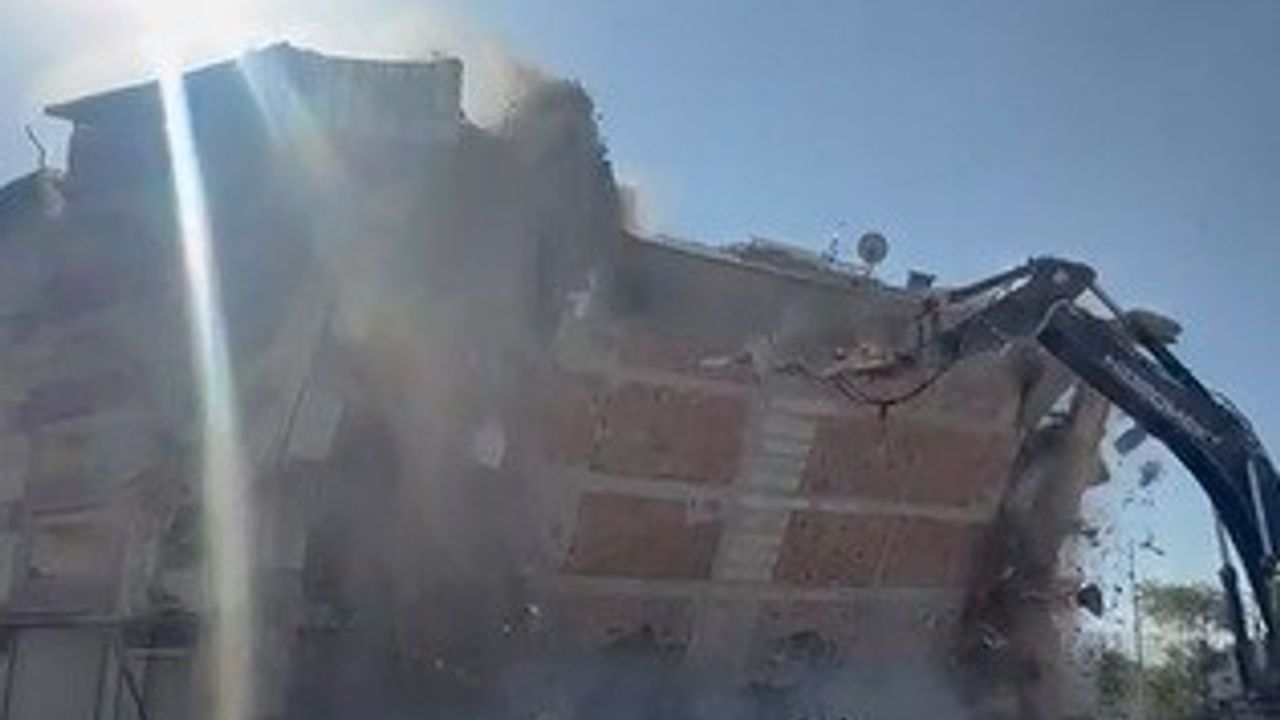 Kahramanmaraş merkezli depremlerde büyük yıkımın yaşandığı Hatay’da mahkeme süreci tamamlanan binalar yıkılmaya devam ediyor. Depremin vurduğu Defne ilçesi Çekmece Mahallesi’nde mahkeme süreci tamamlanan 6 katlı bina, iş makinesinin darbesiyle kontrollü olarak yıkıldı. 6 katlı binanın kontrollü olarak yıkan iş makinesinin, binanın altında kalmaktan saniyelerle kurtulduğu anlar cep telefonu kamerasıyla an be an görüntülendi. Görüntülerde; iş makinesinin son darbesiyle yıkılan 6 katlı binanın altından kalmaktan son anda kurtulduğu anlar kameraya yansıdı. 6 katlı binanın kontrollü yıkılma sırasında herhangi bir olumsuzluk yaşanmadı.
