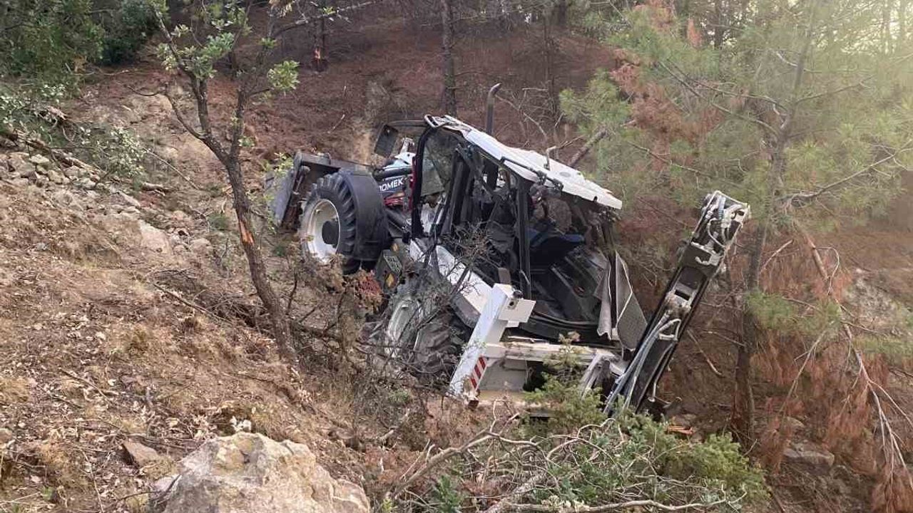 Çorum’un Osmancık ilçesinde sürücüsü yokken hareket eden iş makinesi şarampole yuvarlandı.