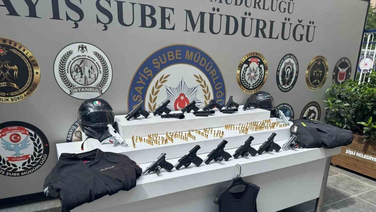 İstanbul Emniyet Müdürlüğü Asayiş Şube Müdürlüğü tarafından gerçekleştirilen operasyonda, ele geçirilen suç unsurları, silahlar, mühimmat ve diğer suç delilleri sergilendi.