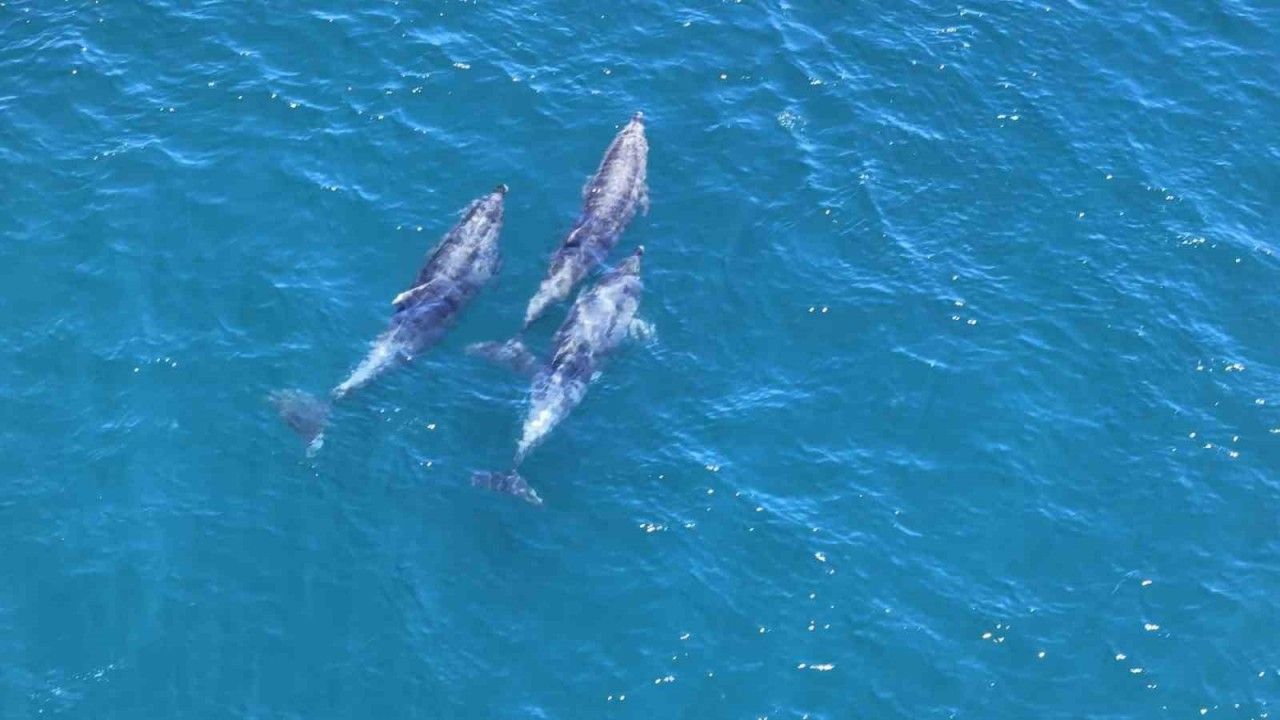 Yaz mevsiminde daha çok görünün yunusların İstanbul’da masmavi denizde dans edercesine yüzdüğü anlar havadan görüntülendi. Yunusların kimi zaman diğer grup üyeleriyle kimi zamanda tek başlarına balık avlarken ortaya çıkardığı manzara belgeselleri aratmadı.
