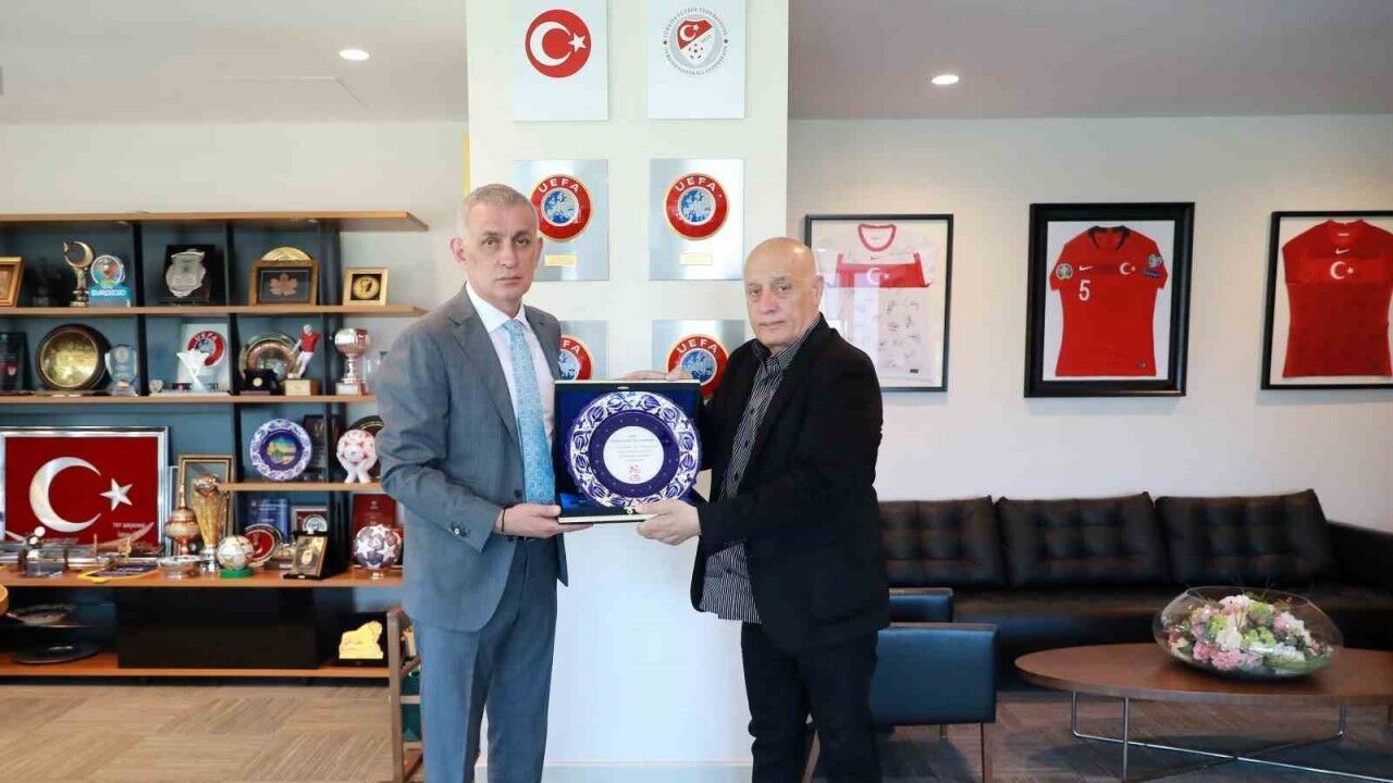 Sarıalioğlu ziyarette, TFF Başkanı İbrahim Ethem Hacıosmanoğlu’na Trendyol 1. Lig kulüplerine verdiği destek ve yaptığı çalışmalardan dolayı teşekkür ederek bir plaket takdim etti.