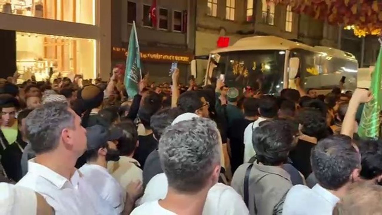 Hazreti Muhammed ve Hazreti Musa’yı bombalanan şehirlerin üzerinde çizen Leman Dergisi’ni protesto etmek üzere toplanan kalabalık tekbirler getirdi, sloganlar attı. Polis ekipleri dergi binasının bulunduğu İmam Adnan Sokak’ın girişine barikat kurdu ve önlem aldı. Kalabalıktan polis barikatını aşmaya çalışanlara da engel olundu.