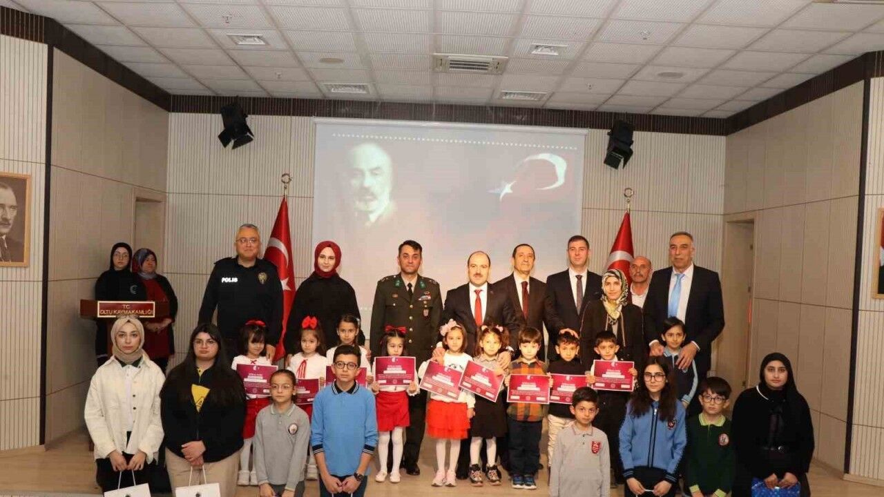 Ayrıca, anaokulu öğrencilerinden İstiklal Marşı’nın 10 kıtasını ezberleyenlere sertifikaları Oltu Kaymakamı Mustafa Çelik tarafından verildi.